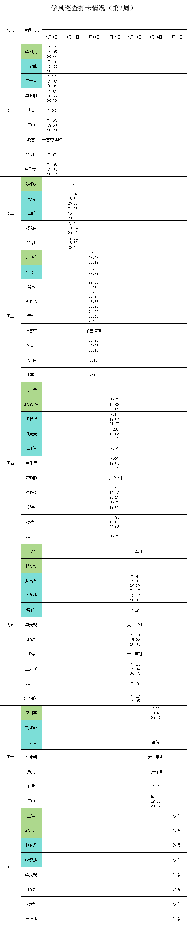 2024-2025学年第一学期第2-3周学风巡查打卡情况公示