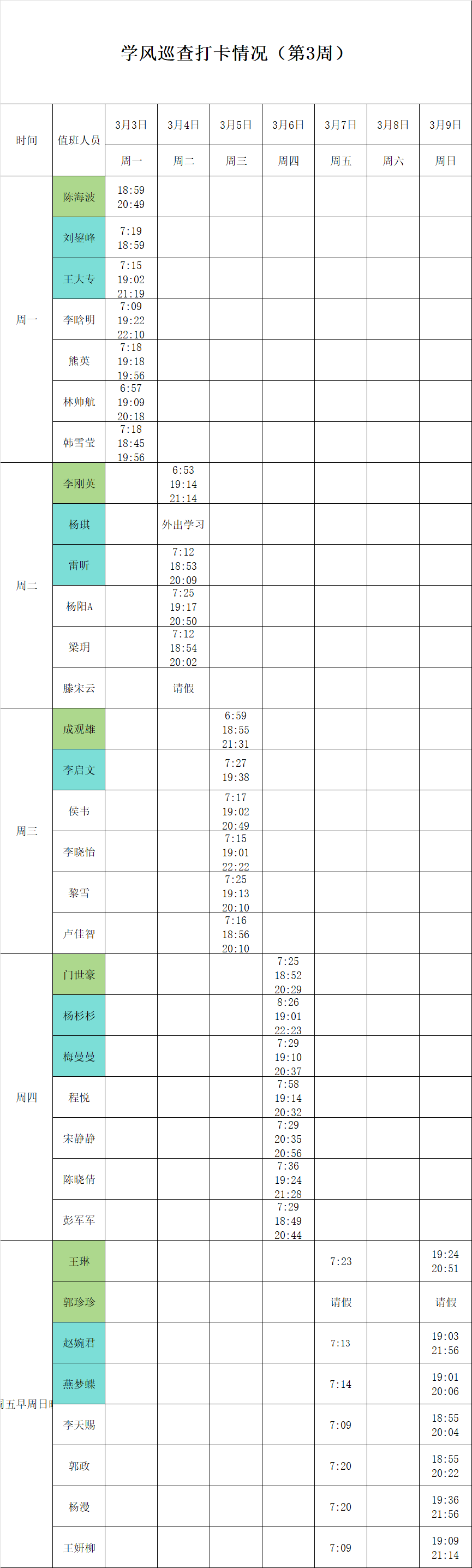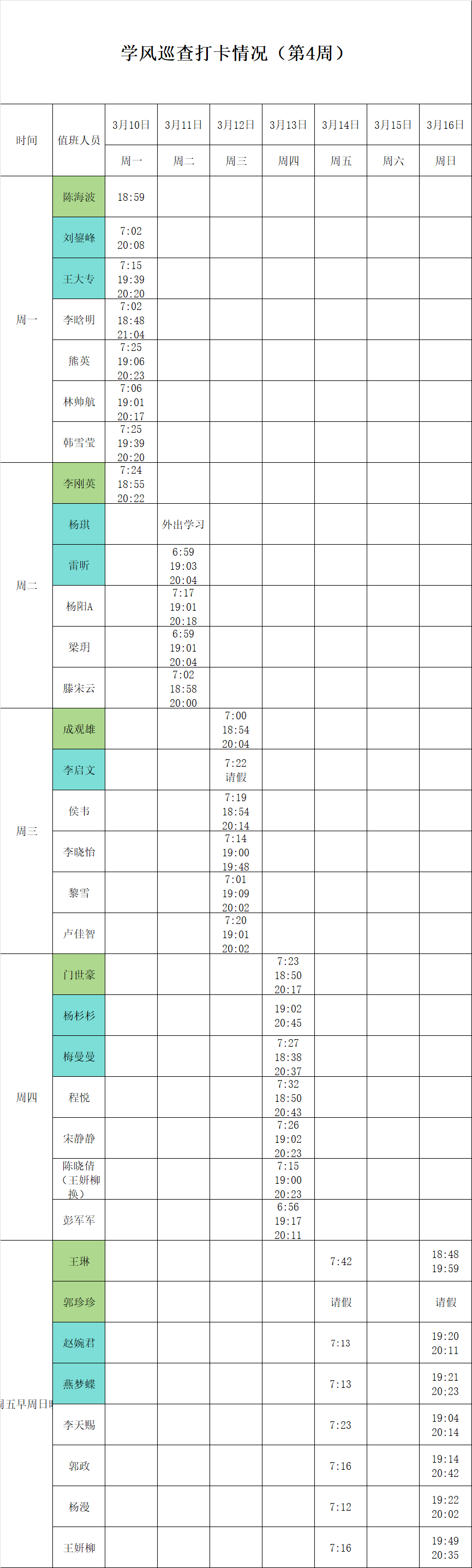 2024-2025学年第二学期第3-4周学风巡查打卡情况公示
