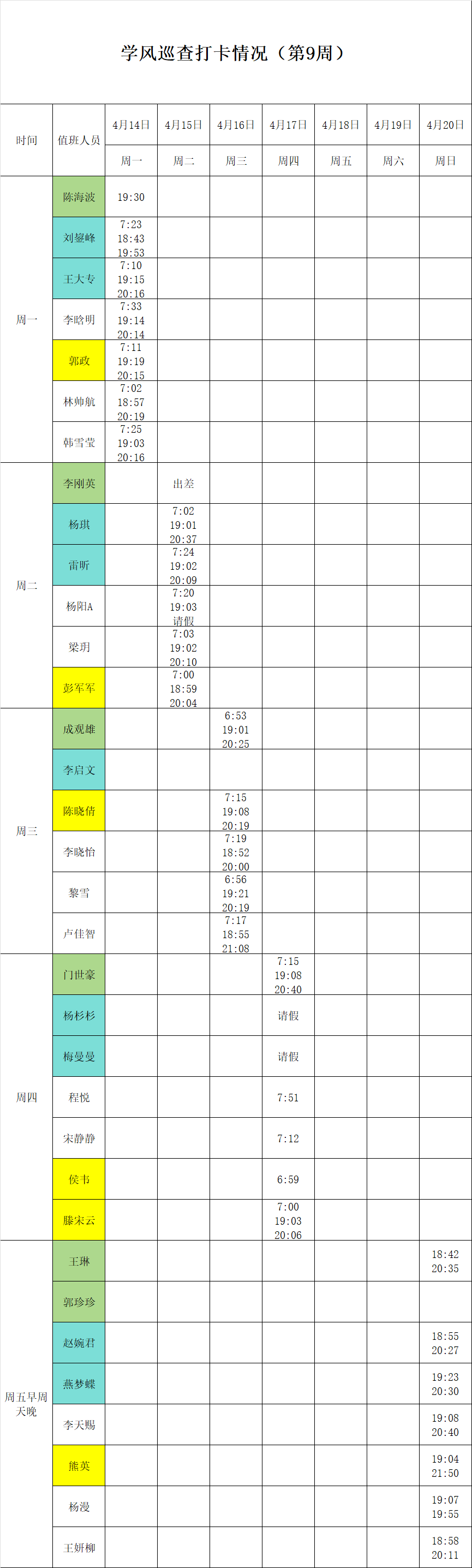 2024-2025学年第二学期第9-10周学风巡查打卡情况公示