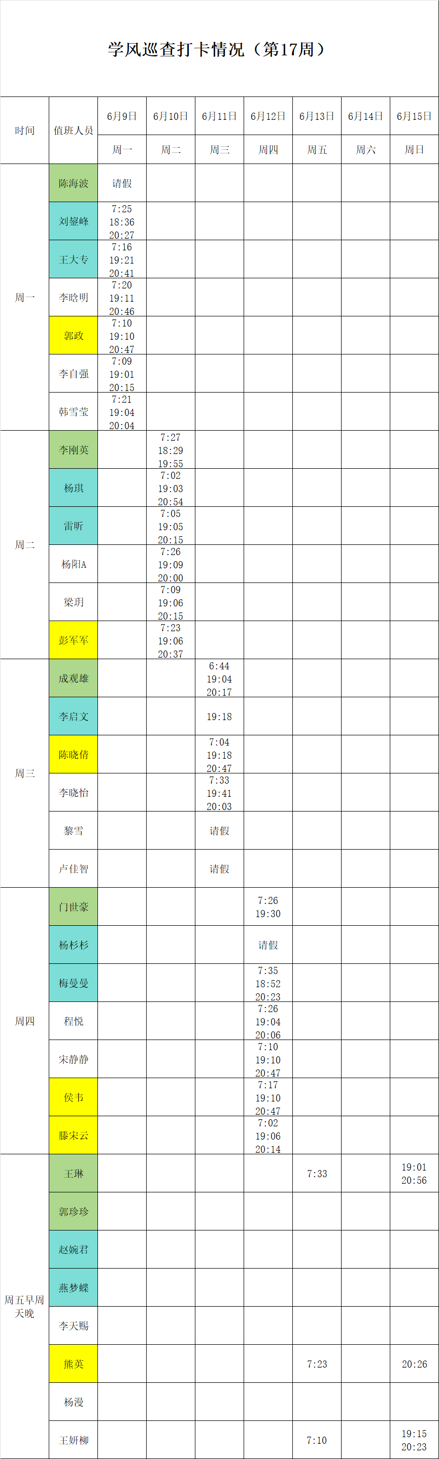 2024-2025学年第二学期第17周学风巡查打卡情况公示