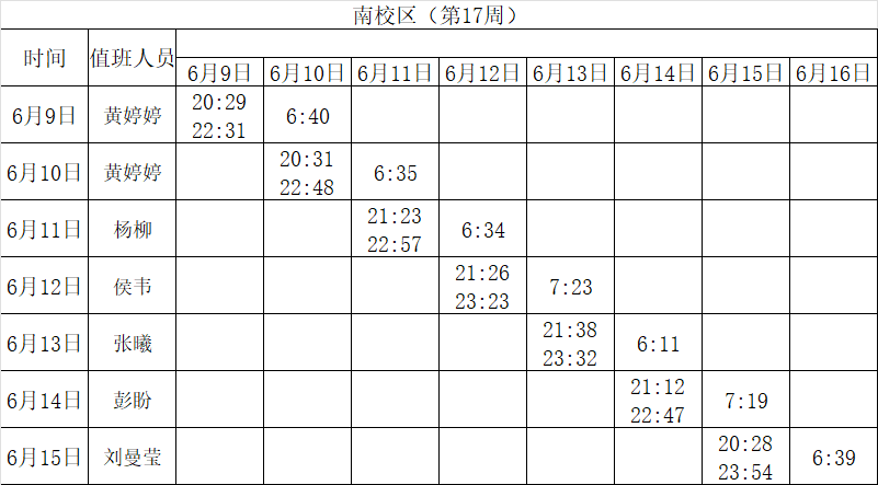 2024-2025学年第二学期第17-18周学工人员寝室值班通报
