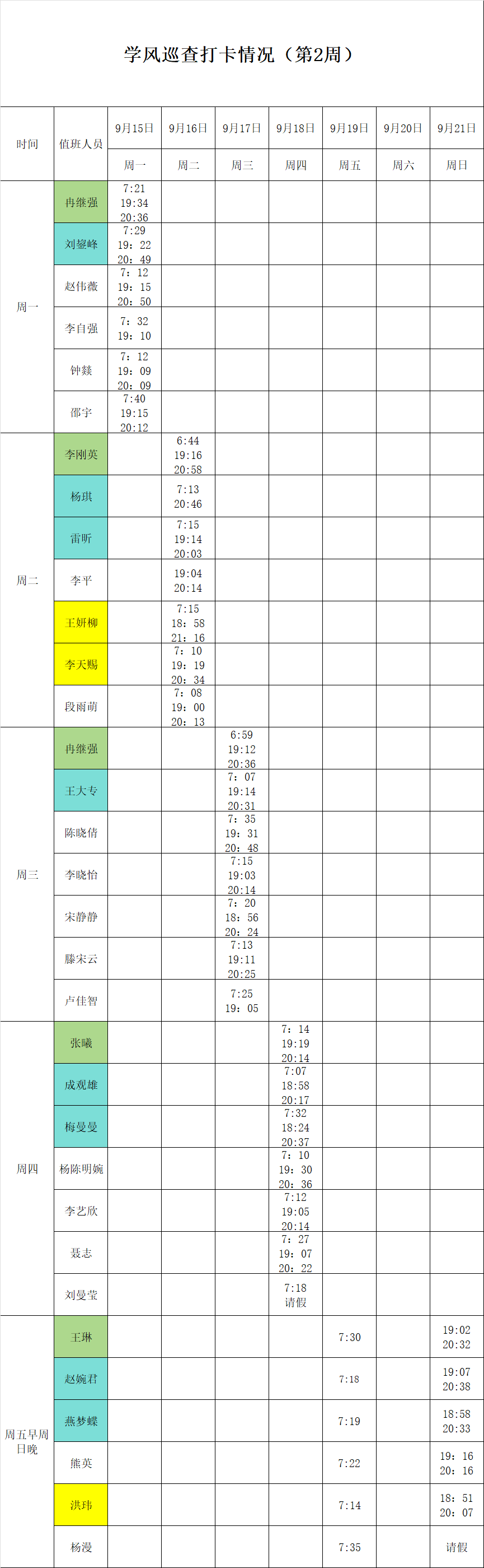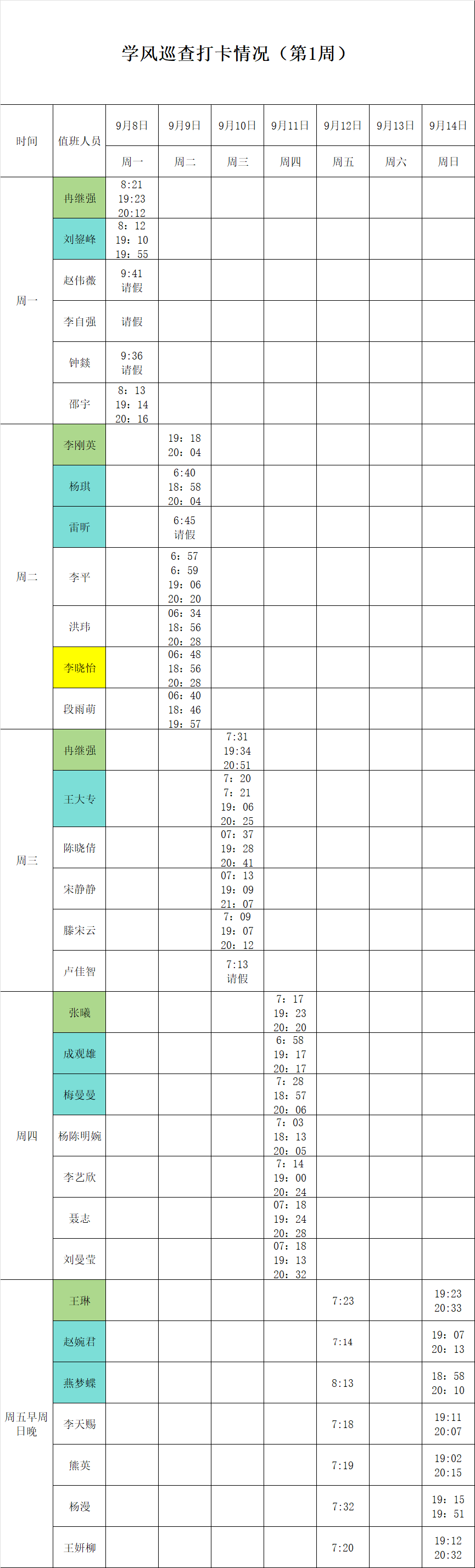 2025-2026学年第一学期第1-2周学风巡查打卡情况公示