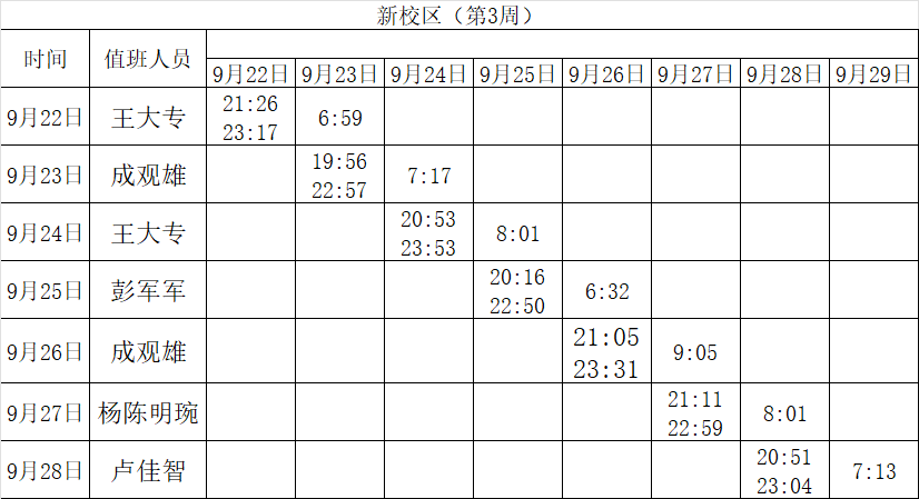 2025-2026学年第一学期第3-4周学工人员寝室值班通报