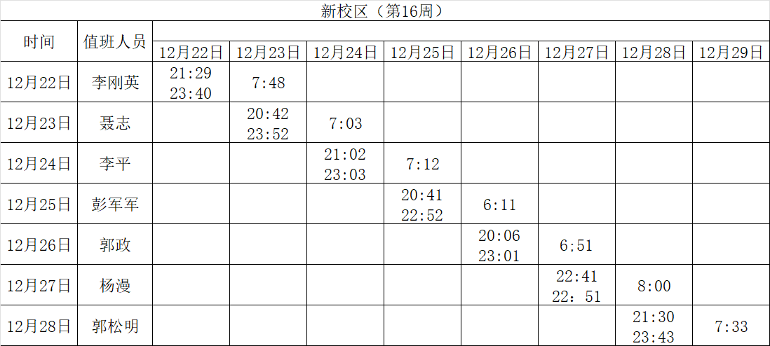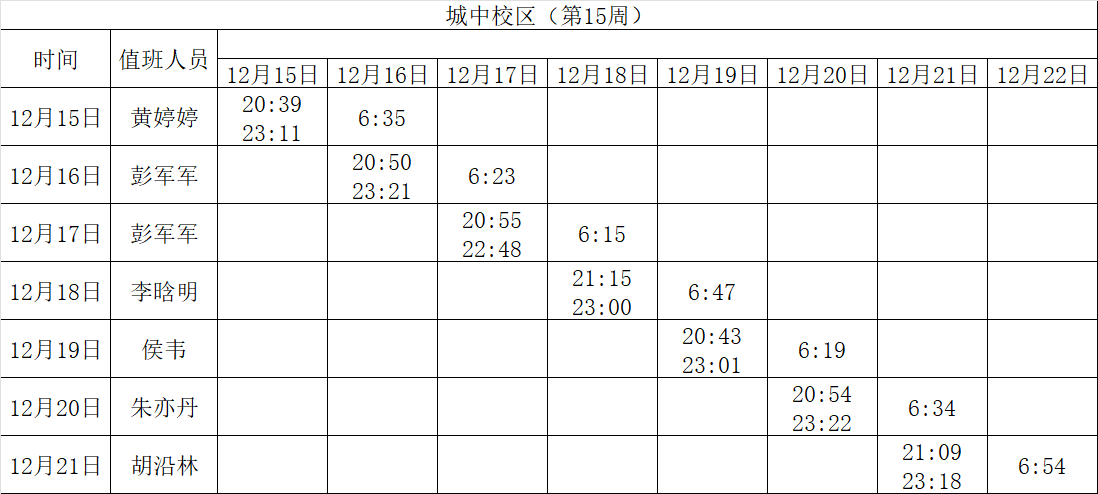 2025-2026学年第一学期第15-16周学工人员寝室值班通报
