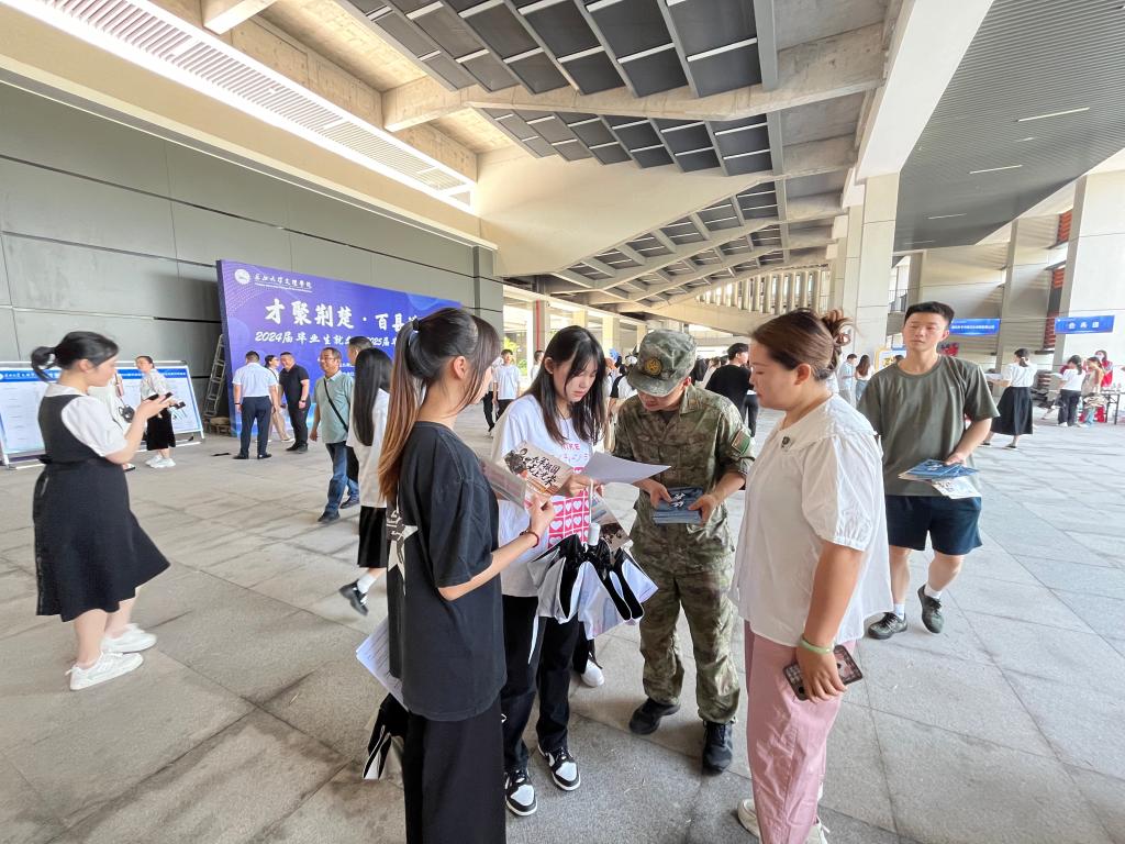 为进一步做好2024年秋季征兵宣传工作,积极动员青年员工踊跃报名参军,5月25日beat365官网中文版本联合荆州区人民武装部在校内招聘现场设置征兵宣传点,区人武部袁齐华参谋带领公司老兵团优秀退役员工士兵在现场进行宣传和政策解读。