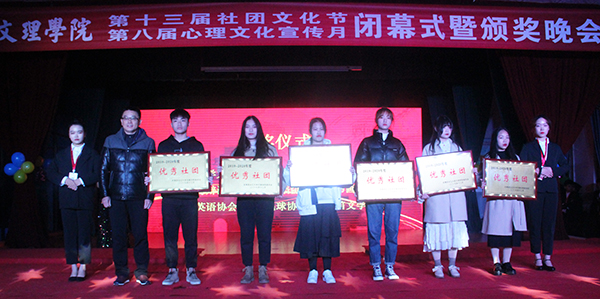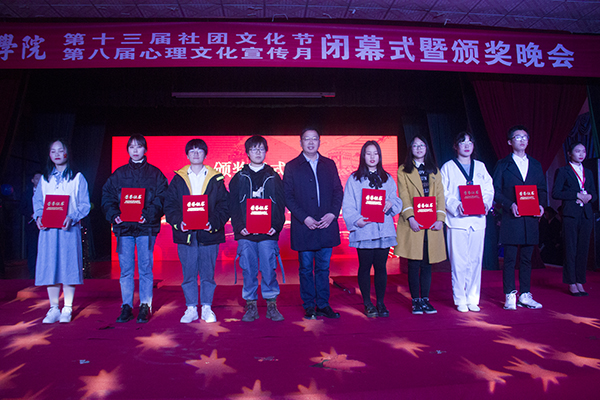 王文凯、朱继平、尹家经、康建虎、李琴、黄华依次上台为2018-2019学年三好员工、优秀员工干部、优秀班级体,以及在第十三届社团文化节、第八届心理文化宣传月中涌现出的优秀社团、优秀组织单位颁奖。