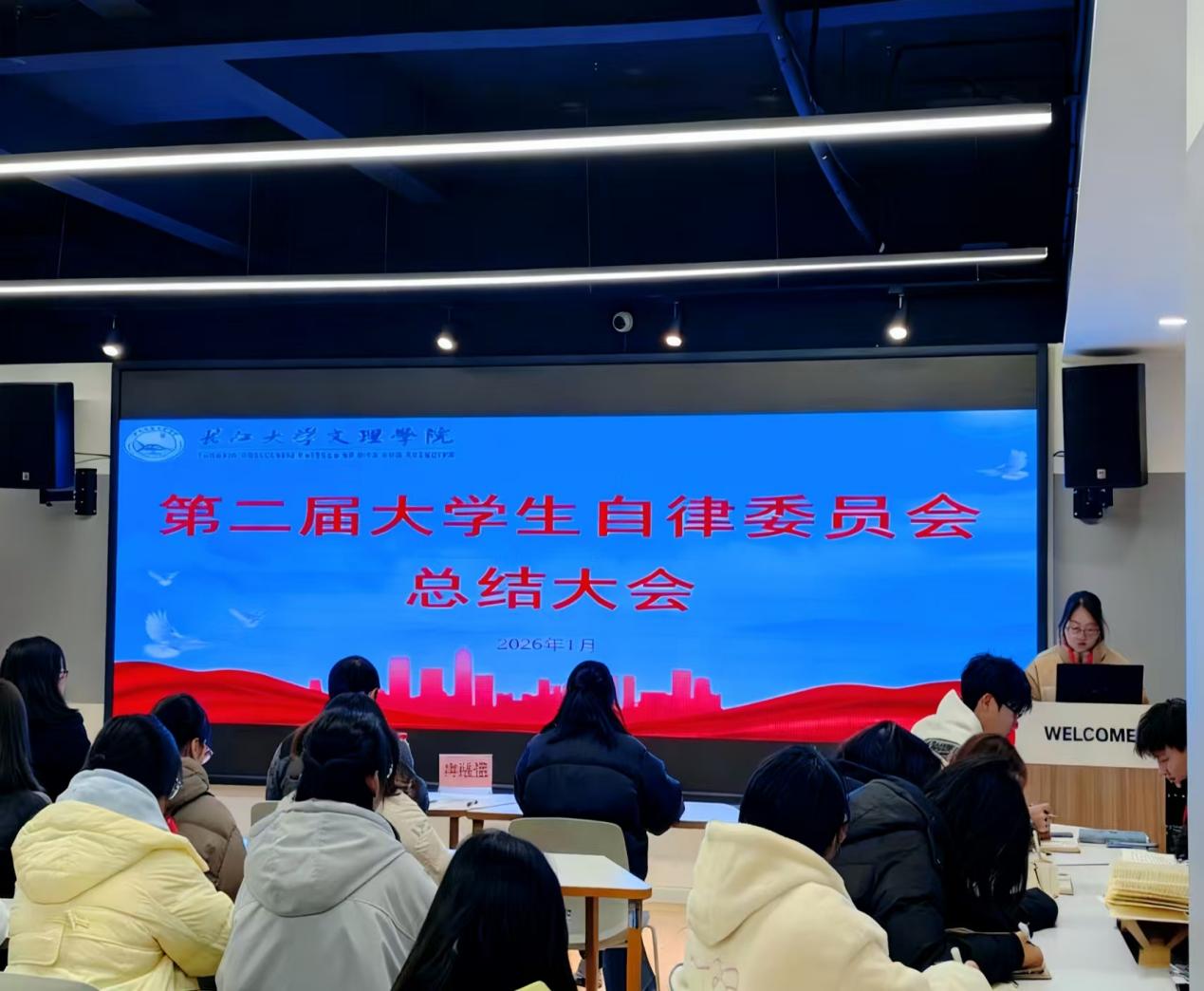 大会伊始,综合办公室、学习监察部、宿舍监督部、校园服务部、宣传部五个职能部门依次作工作汇报。综合办公室深耕学风建设,以规范管理强化跨部门协同联动;学习监察部巧用信息化手段,为考勤工作提质增效;宿舍监督部扎实开展多轮查寝与晚归排查,筑牢校园安全防线;校园服务部以特色活动为抓手,夯实服务育人根基;宣传部圆满完成各项宣传设计任务,并计划组织专项培训会,进一步提升工作质效。各部门各司其职、协同并进,为校园服务高质量发展注入强劲动能。