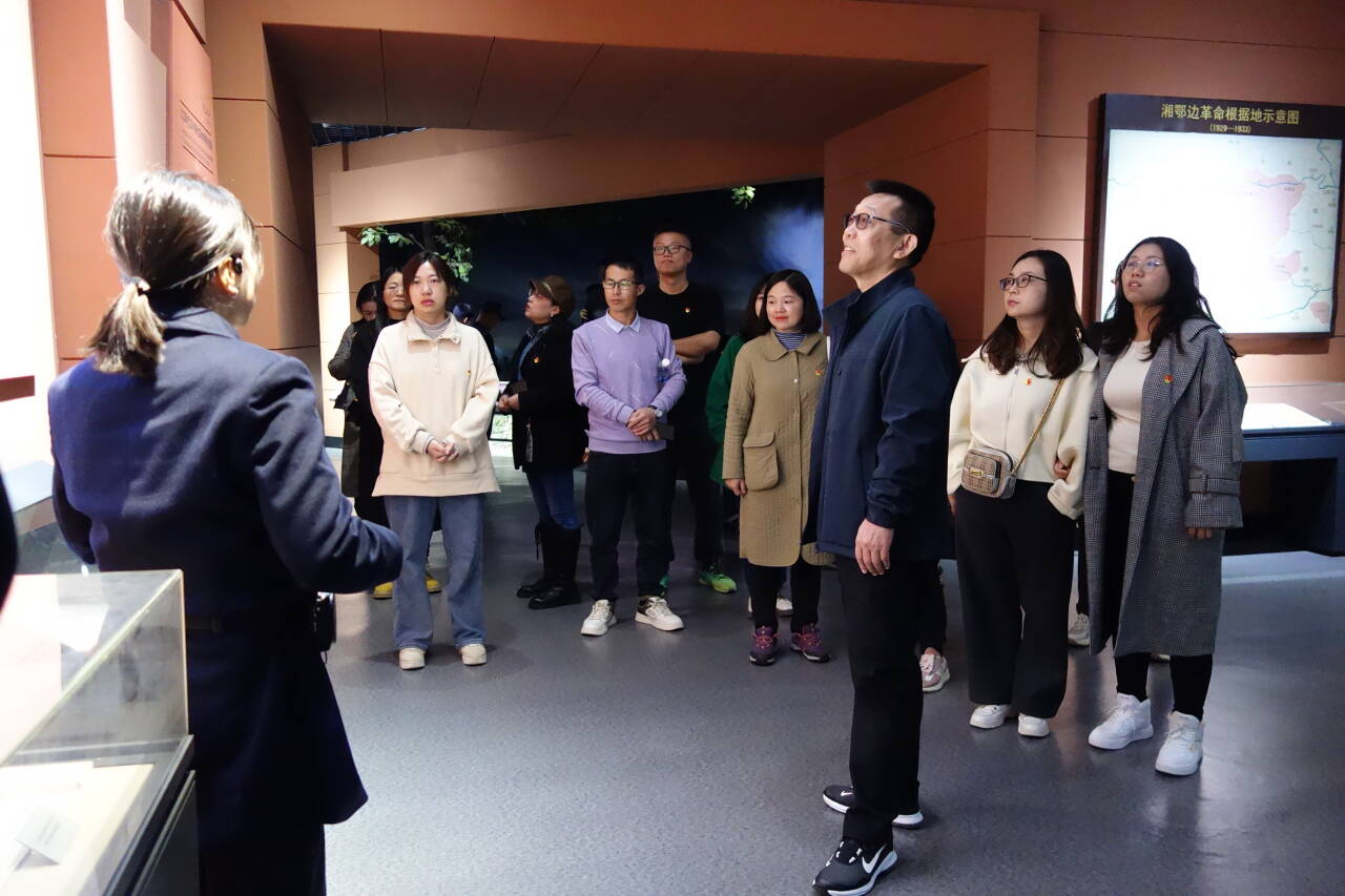 纪念仪式之后,支部党员前往湘鄂西苏区革命根据地纪念馆参观。馆内展示的第二次国内革命战争时期湘鄂西苏区史实,概括而生动地再现了湘鄂西人民革命斗争的光辉历程。一张张照片、一件件实物、一个个可歌可泣的英雄故事,无一不彰显着“艰苦奋斗、百折不挠、勇往直前、战胜每一个困难”的洪湖精神。