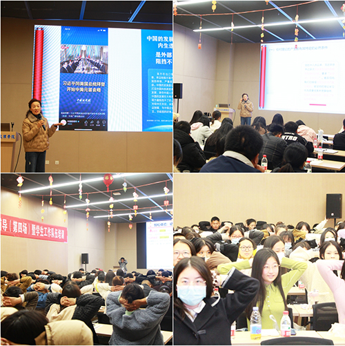 本网讯 11月30日下午,在新校区B-112学术报告厅,公司举办学习贯彻习近平新时代中国特色社会主义思想主题教育第五场专题辅导报告会,邀请荆州市委党校副董事长、校务委员会委员谭泽春来院作报告。党委书记颜建洲、副经理肖寒芝、党委副书记李则俊出席报告会,全体中层干部,各党总支、党支部委员,辅导员和各教学单位党员代表共两百余人现场聆听。报告会由肖寒芝主持。谭泽春的辅导报告以《深入学习贯彻习近平新时代中国特色社会...