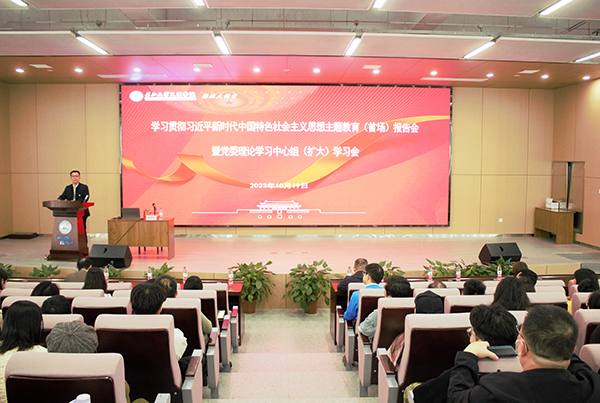 ——以习近平文化思想引领楚文化“双创”工作本网讯(记者 刘磊)10月19日,在新校区B-112学术报告厅,公司举办学习贯彻习近平新时代中国特色社会主义思想主题教育(首场)报告会暨党委理论学习中心组(扩大)学习会,邀请荆州市委宣传部副部长,荆州市社科联党组书记、主席黄道培来院作专题报告。全体院领导、中层干部、党支部书记、辅导员、马克思主义公司全体教师和各教学单位师生代表共两百余人现场聆听。报告会由公司党委...