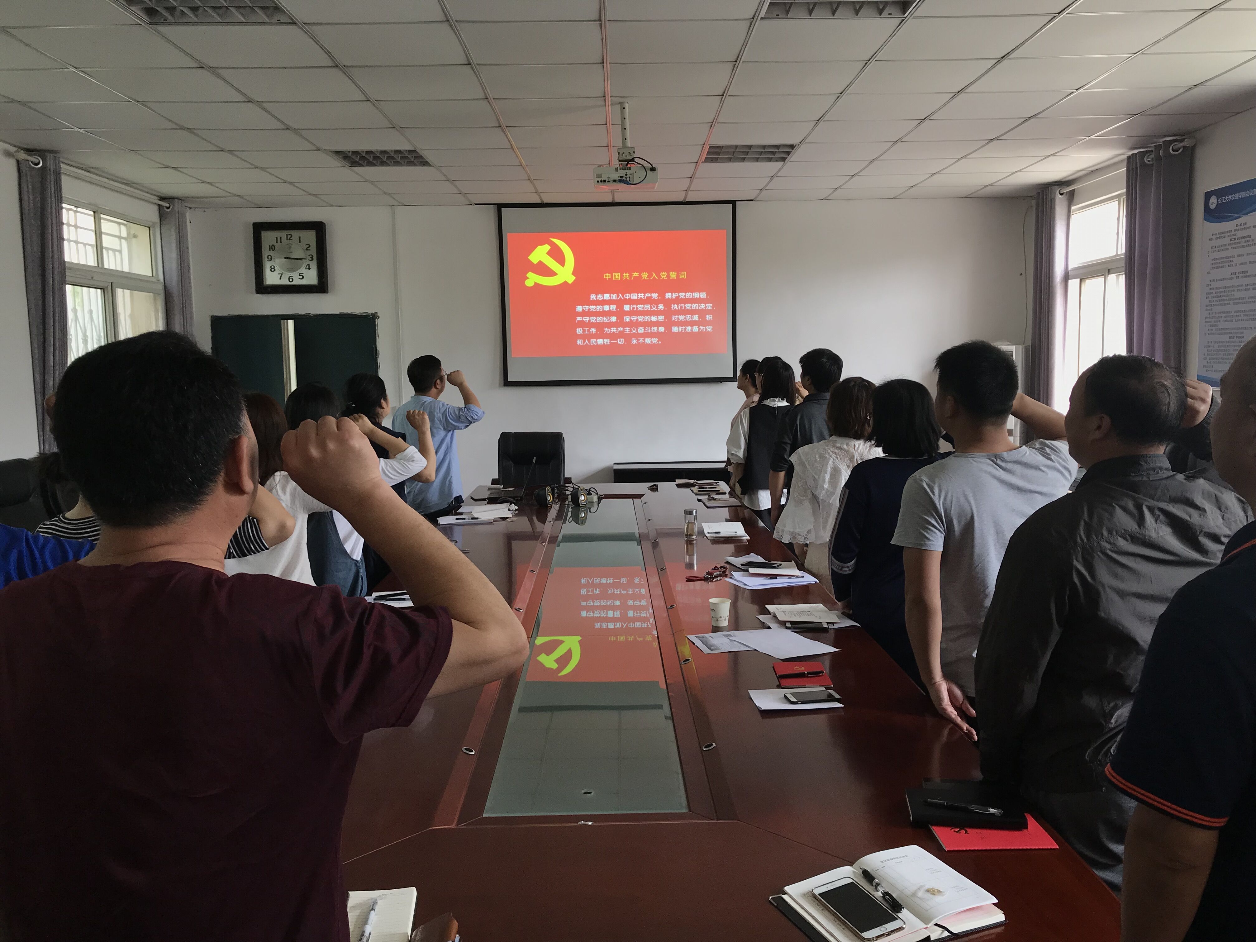 政治学习完后,在机关二支部主题党日活动现场,全体党员面对党旗庄严宣誓,并学习了《关于加强党的政治建设的意见》《中国共产党重大事项请示报告条例》等文件。
