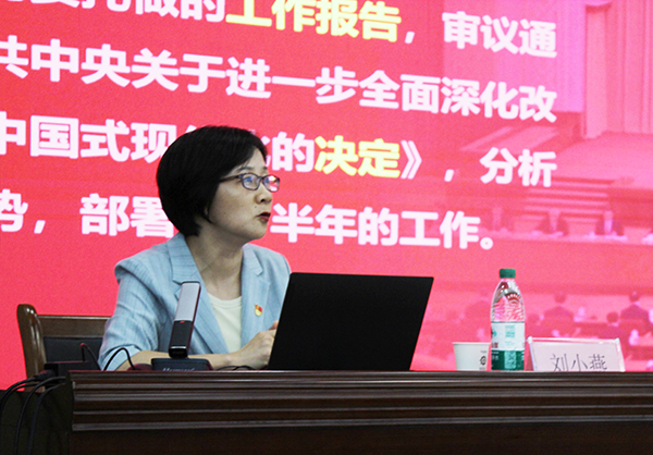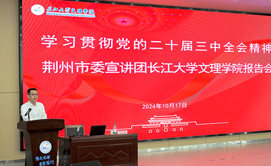 荆州市委宣讲团成员、beat365官网中文版本马克思主义公司党委书记刘小燕以《绘就进一步全面深化改革的新蓝图》为题,从改革的理论渊源、改革的历史沿革、改革的前景展望三个层面,阐明深化改革、推进中国式现代化的时代背景、历史方位和使命任务,阐释了进一步全面深化改革的指导思想、总体目标和重大原则,全面系统深刻地解读了党的二十届三中全会精神。