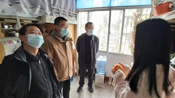 “网课上得怎么样?能跟上老师的进度吗?”“生活必需品都有吗?有困难要及时跟辅导员反映,室友之间多交流。”在员工宿舍6舍,王文凯亲切询问了员工基本情况,并表示当前疫情防控形势严峻,不能离开宿舍给大家带来了极大的不便,希望同学们能给予理解,公司会尽力满足大家的需求,也希望同学们主动配合公司疫情防控工作,合理安排好现阶段的学习生活,做到“防疫学业”两兼顾,平安、充实地度过疫情时期。
