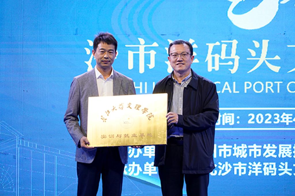 本届文创艺术节由荆州市城市发展控股集团有限公司主办,开幕式上,王文凯与湖北沙市洋码头文创园投资建设有限公司副总经理胡杰共同为公司实训与就业基地揭牌,并宣布启动“生态荆江·映象码头”短视频创作大赛。
