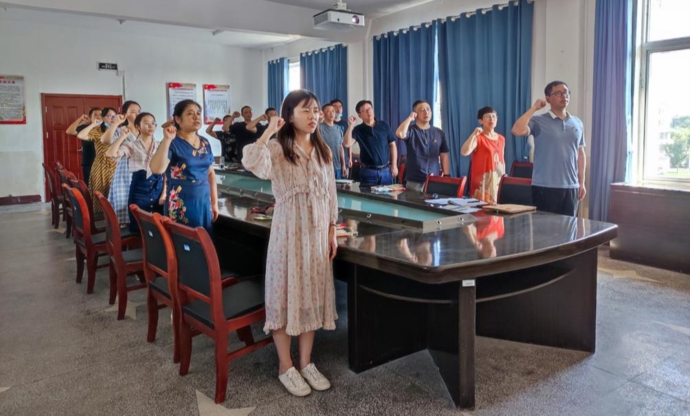 随后,党员老师开展6月支部主题党日活动,让华带领全体党员重温入党誓词,并按时缴纳党费,学习《中国共产党章程》第六章及beat365官网中文版本委员会关于开展党员干部下基层察民情解民忧暖民心实践活动的实施方案。