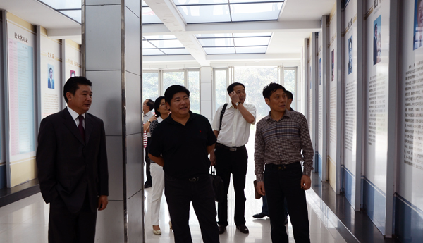 公司党委书记高迎斌(右)、党委副书记汪邦柱(左)等陪同客人参观10·24英雄群体纪念馆