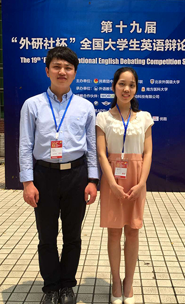 本网讯(通讯员 樊雪琦) 5月8日,从第十九届“外研社杯”全国老员工英语辩论赛华南赛区总决赛现场传来喜讯:公司外语系选手樊雪琦、周全组成的代表队喜获华南赛区三等奖。