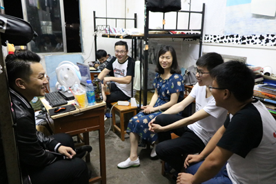 本网讯(通讯员 陈海波 记者 吴秀丽)6月12日晚,机电与信息工程系党总支书记尤金荣、毕业班辅导员一行深入员工宿舍,与毕业生深情话别。
