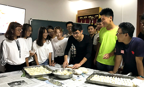 设计系师生包饺子迎中秋