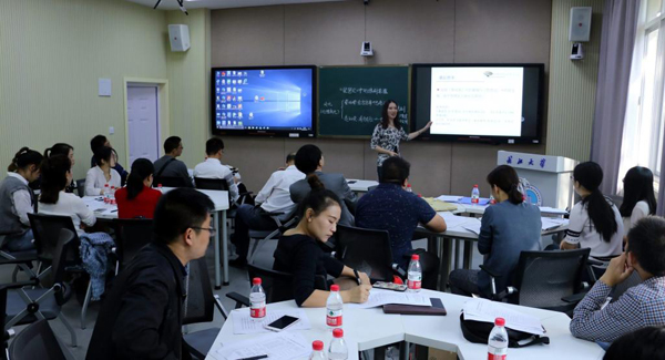 本网讯近日,人文系组织各教研室教师代表前往beat365官网中文版本东校区1教309智慧教室,观摩了文公司杨名老师讲授的示范课《苏轼的超旷风格》。