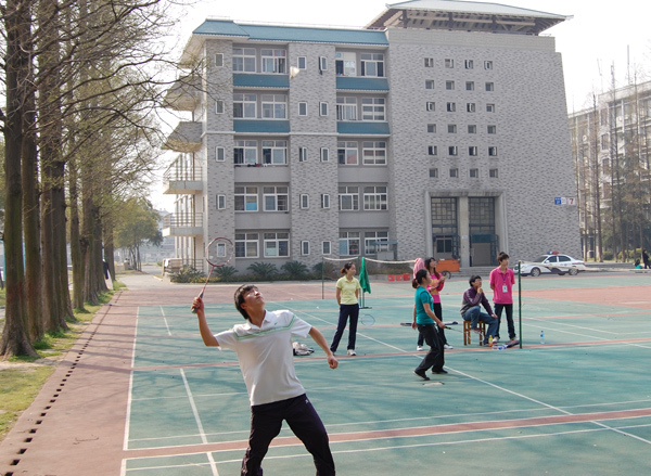 春天的清晨,古泮池旁书声琅琅,在1号教学楼西侧的草坪上、石桌边,员工们三三两两,或朗读外语、或训练普通话发音、或背数学公式。