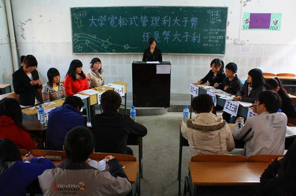 本网讯(见习记者 肖周)12月3日下午,辩论协会与营销实践协会在公司西区举办了一场论题为《大学宽松式管理利大于弊还是弊大于利》的友谊辩论赛。