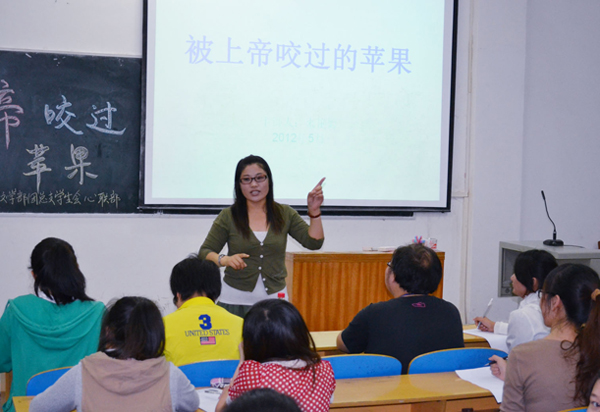 本网讯(员工记者余菲 史景宏)5月16日晚,1教114教室笑声不断,心理咨询中心来艳婷老师为人文学子带来《被上帝咬过的苹果》心理讲座,激励大家相信只要自己努力付出,不懈追求,梦想终究会实现。